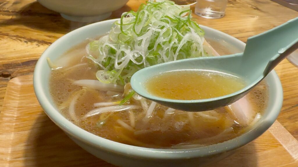 スープは優しさの中にもコクがあり、一口飲むともう一口飲みたくなる味。