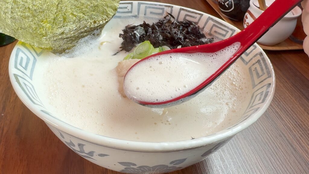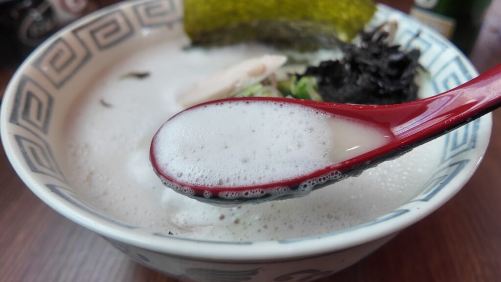 お分かりいただけますでしょうか、スープの表面があわあわです。