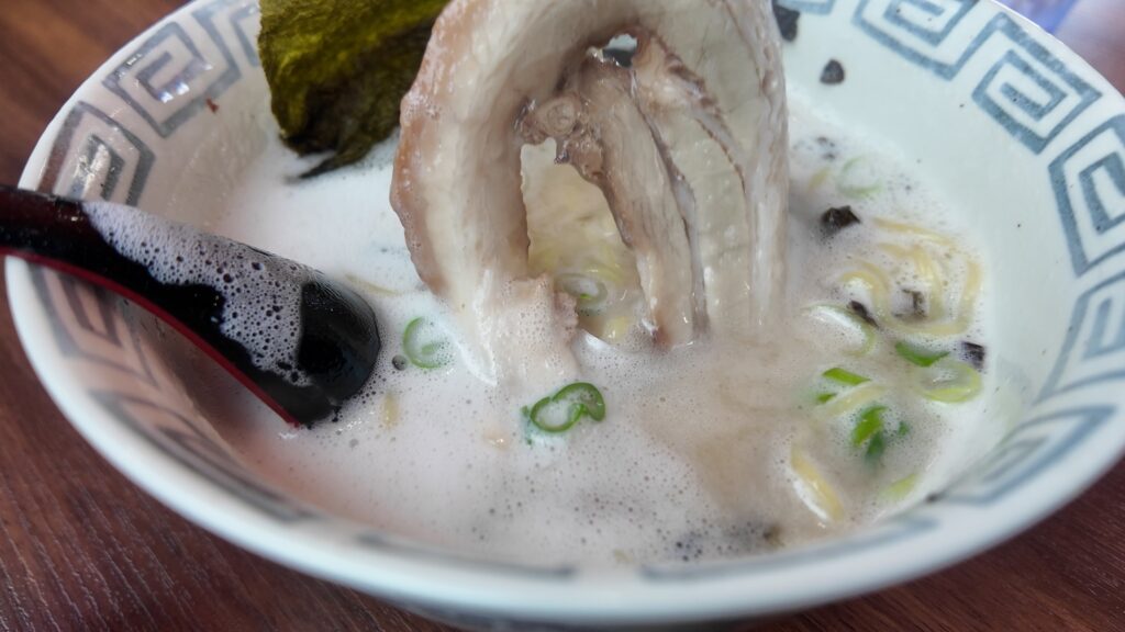 鶏チャーシューはしっとりとしていて優しく、豚チャーシューは大きく食べ応えがあり、どちらもそれぞれ異なった美味しさ。