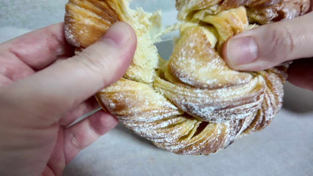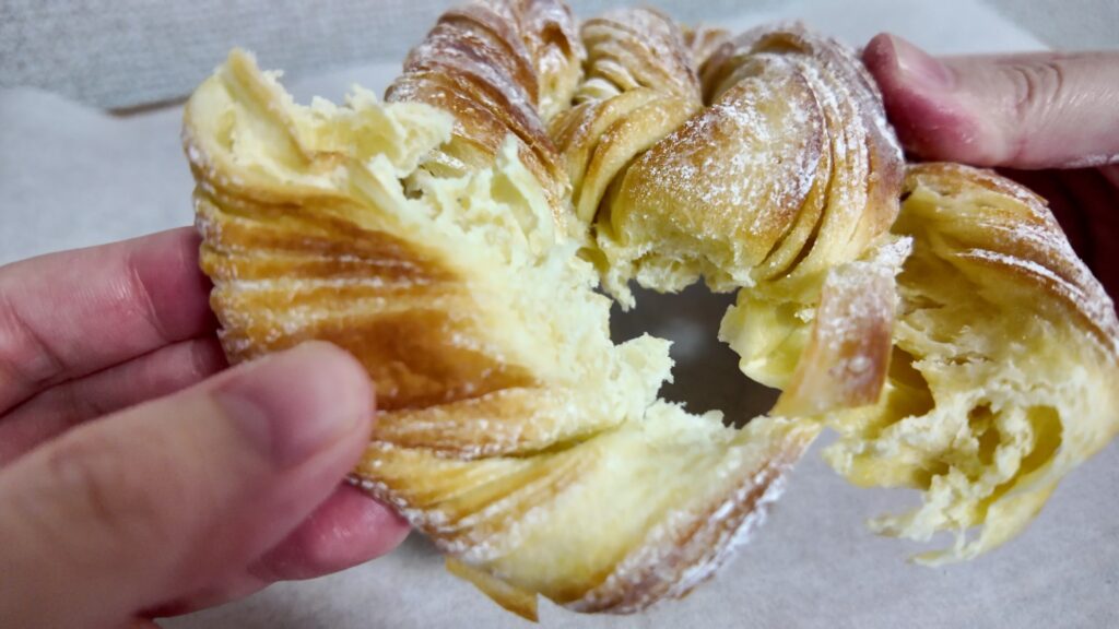 クロワッサンベーグルとはクロワッサンとベーグルが組み合わさった新食感のスイーツなのだそうです。
