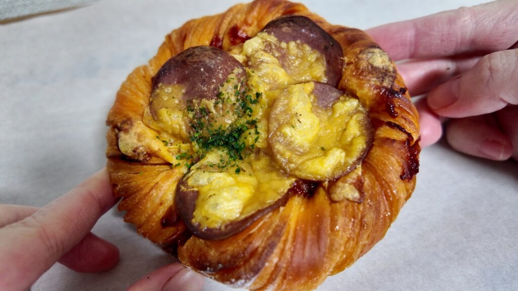 甘い生地とサラミやチーズの塩っ気が合わさった甘塩っぱさが面白いです。