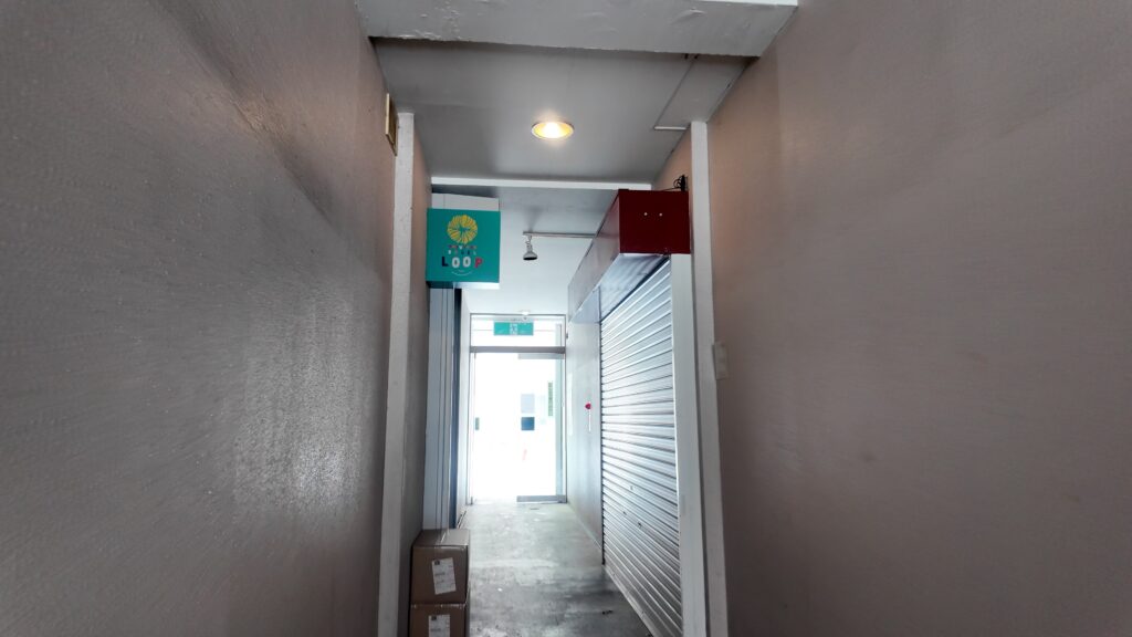 お店は裏通りに面しているようで建物の中を通り反対側へ