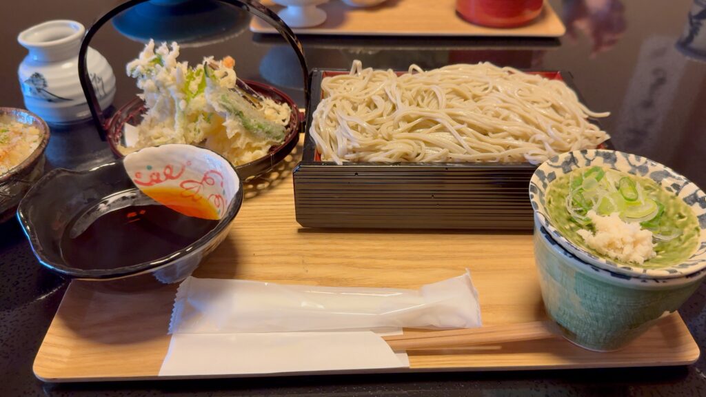 天ざるとかしわそばで心が揺れます。