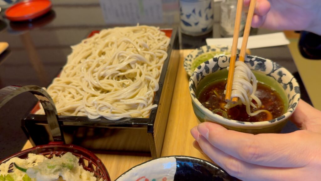 何から食べようか迷いますが、まずはお蕎麦から。