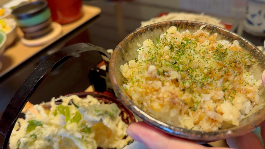 天ざるのお供に『たぬきご飯』も注文。