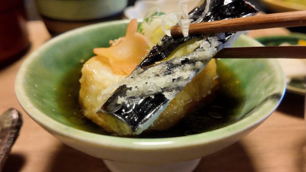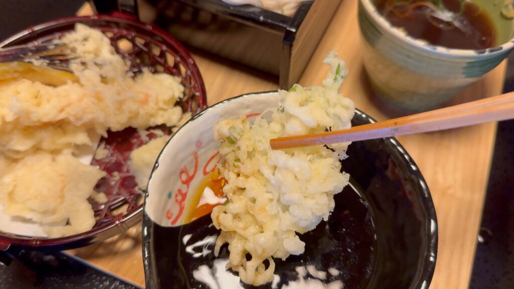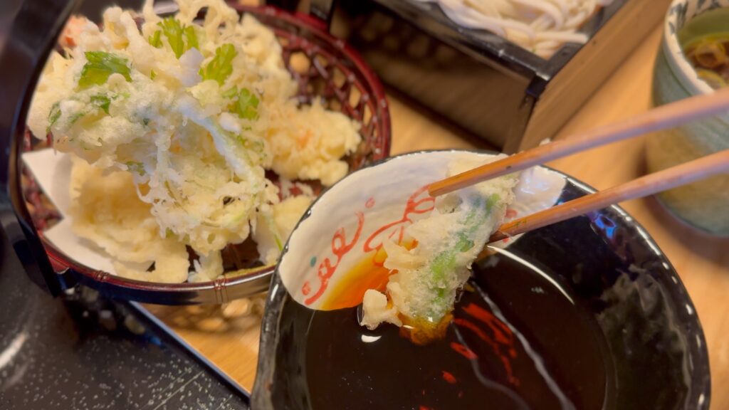 サクッとした部分と、つゆに浸った部分はジュワッと溢れ出てきて食感も楽しむことができます。