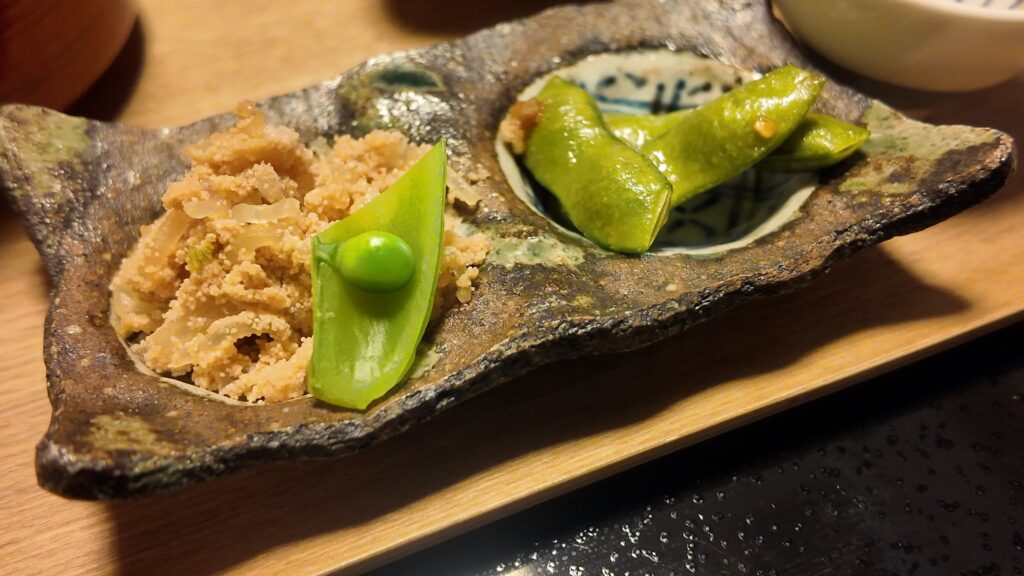 子和えもえだまめも、ご飯にもお酒にも合う味。