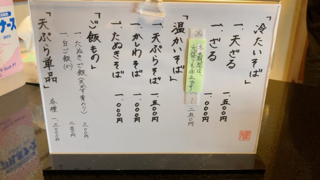 店主さんは以前和食のお店を営まれていたそうで、休業を経て和食とお蕎麦のお店として2023年にリニューアルオープンされたのだそうです。