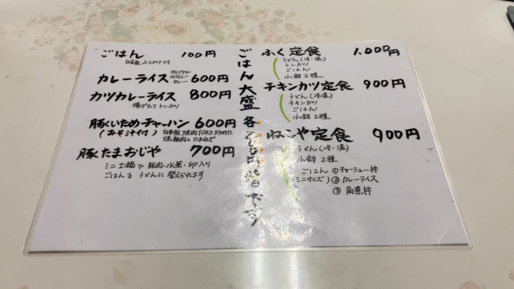 うどんの他にご飯もののカレーやチャーハン、おじやもあります。