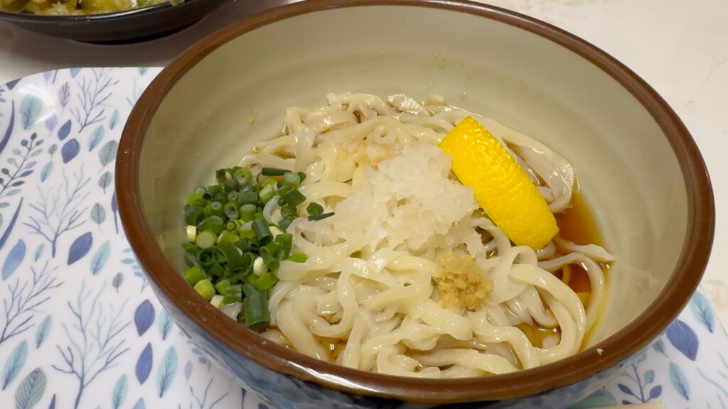 ぶっかけには大根おろし、ねぎ、レモン、ごま、生姜が入っています。