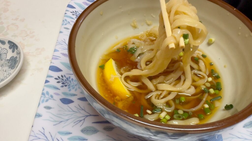 コシがあり、もちっとしていて噛むほどに美味しいうどんで、さっぱりといただけるので幾らでも食べられそうです