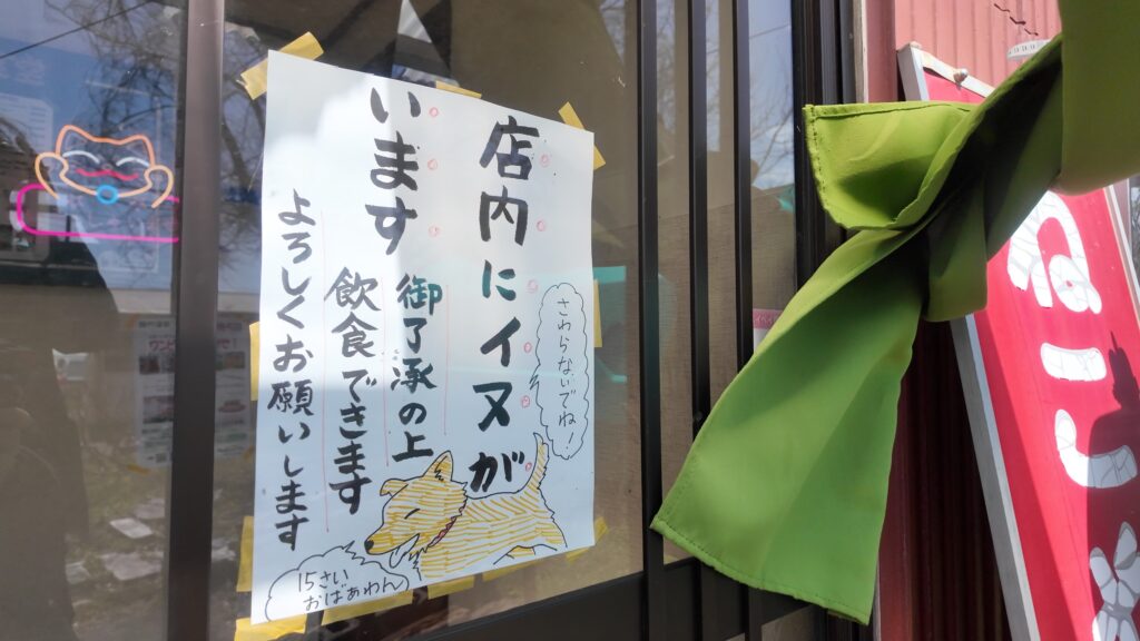 入口には店内にワンちゃんがいる旨、触らないようとの張り紙が貼ってありました。
