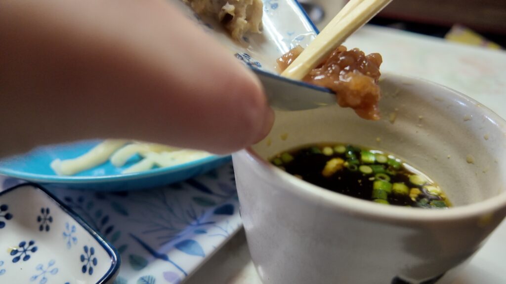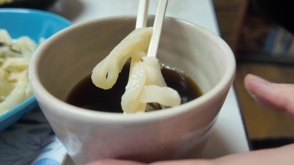 まずは薬味を入れずにそのままつゆにつけていただいていきます。
