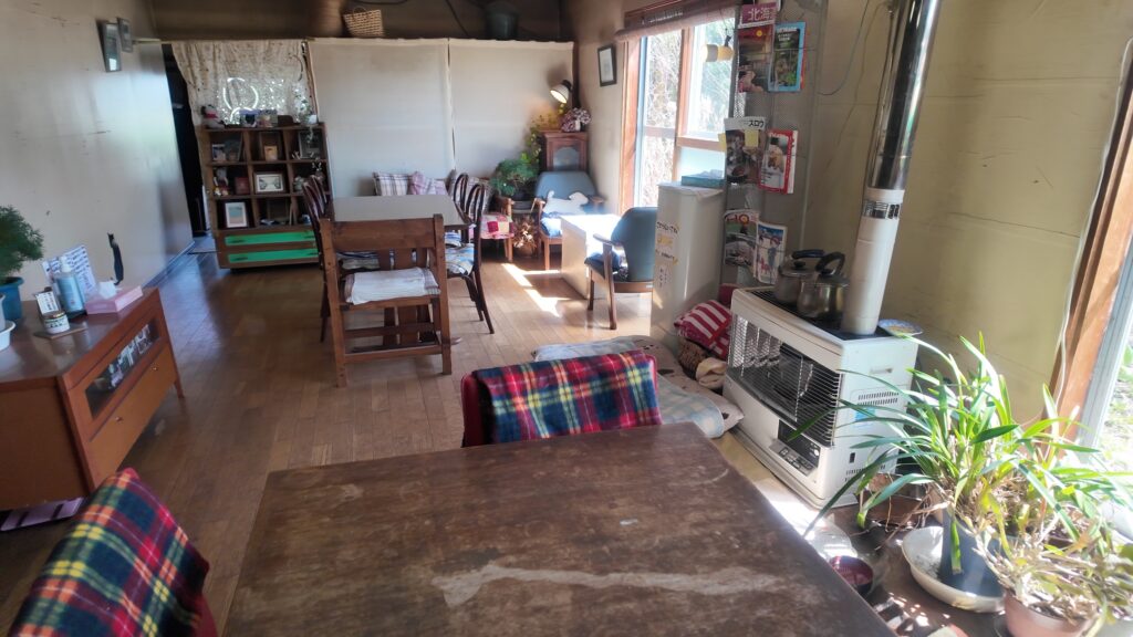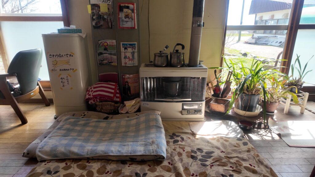 ストーブの前はワンちゃんのフクちゃんの場所になっていました。