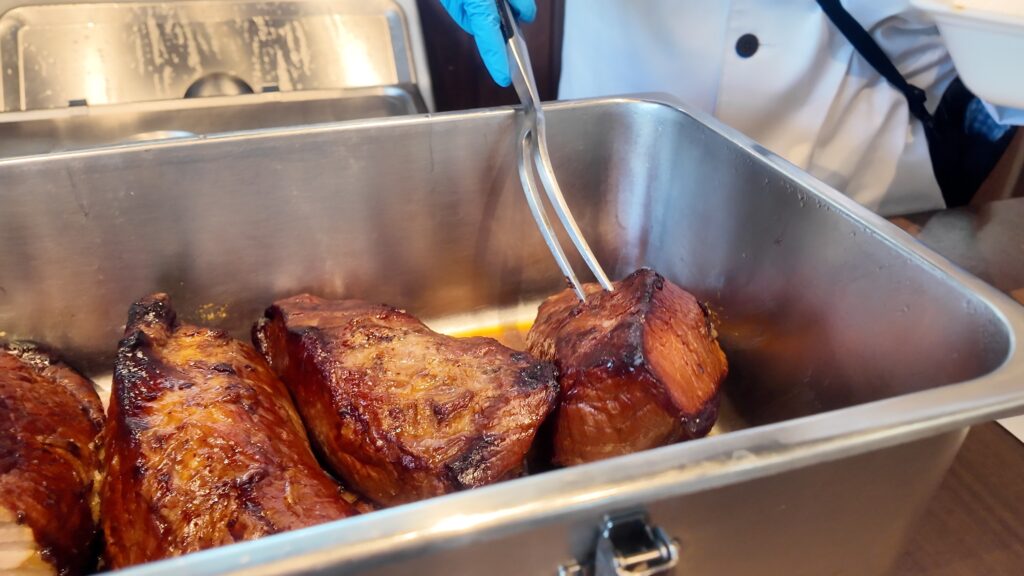 画像のこちらは別商品なのですが、午前中は焼豚が焼かれているところを見ることも出来るようです。