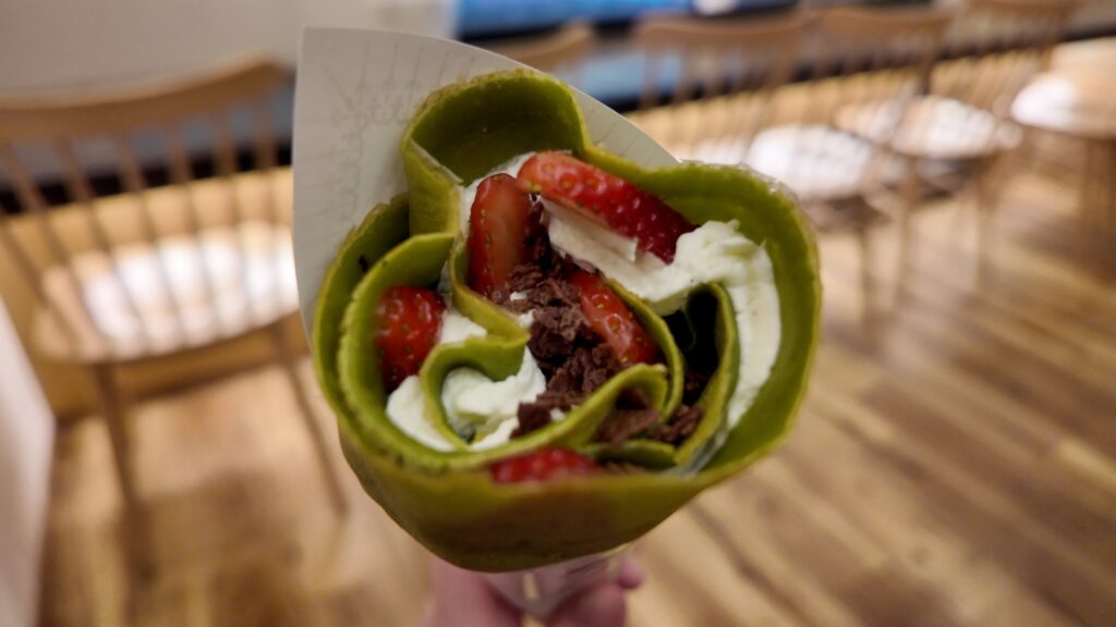 私が注文したのはクレープから『いちご宇治抹茶』