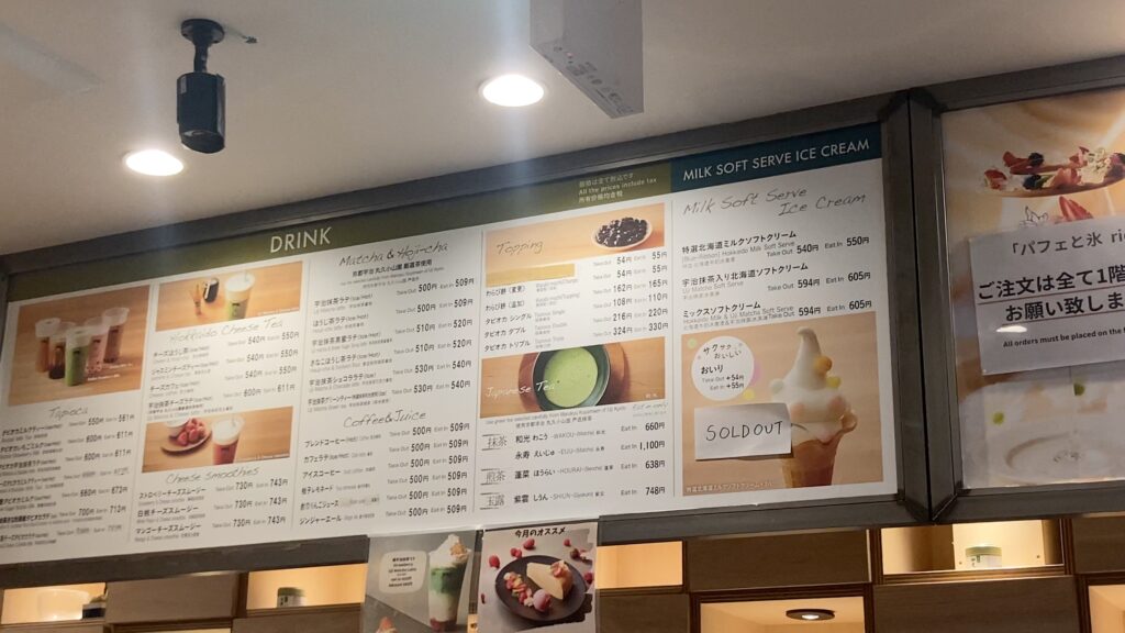 ドリンクの種類も抹茶からタピオカまでかなり豊富にあります。