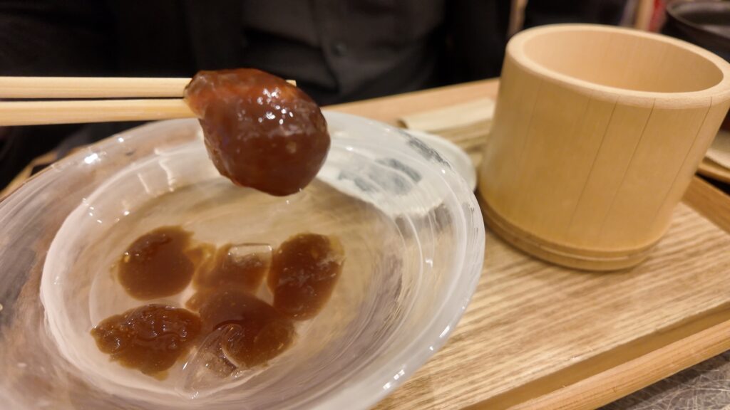そこに黒蜜をちょろっとかけていただいていきます。