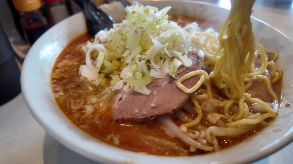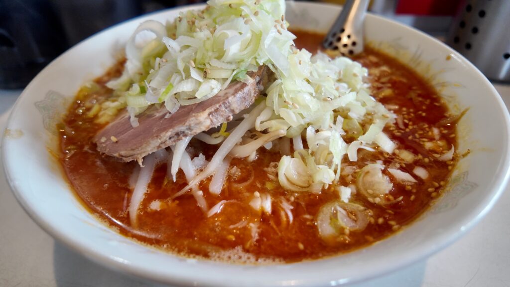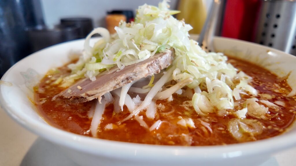 真っ赤なスープに映えるたっぷりのネギがいいですね。