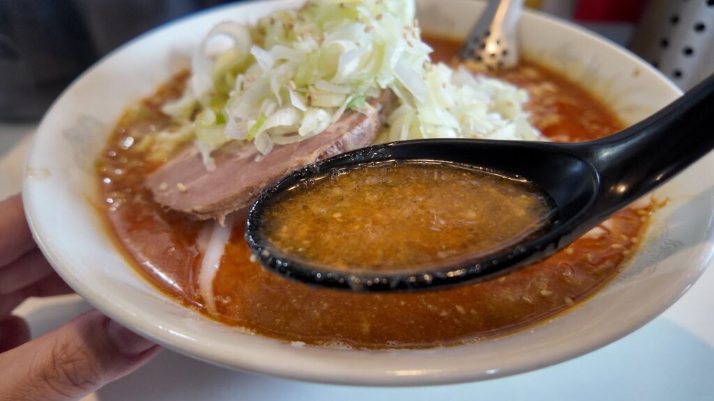 ゴマや山椒の香りが良く、スープを一口飲み旨いの一言。