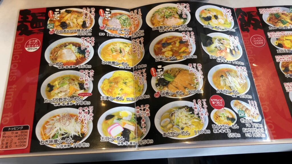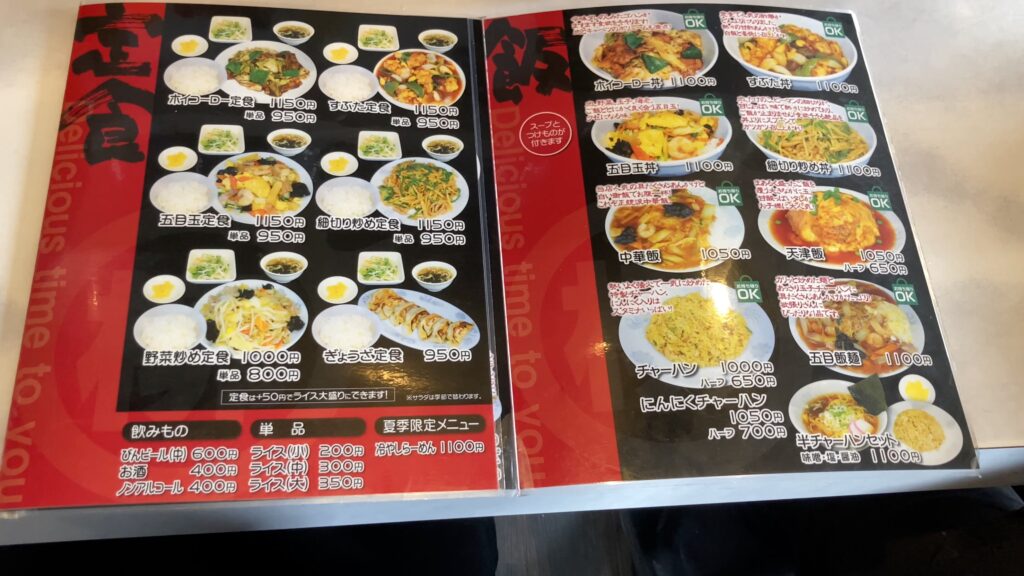 メニューは定食、丼や天津飯、中華飯などのご飯ものに麺類も種類が多く、排骨らーめんやかきのらーめんなど気になるものも沢山あります。