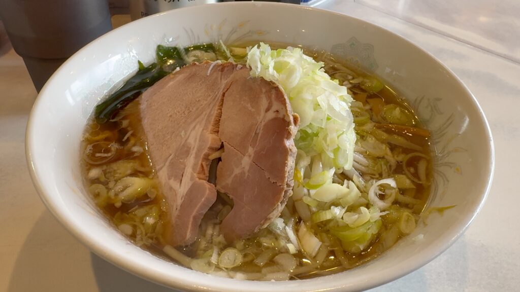 大きなチャーシューとネギがたっぷりのった綺麗なビジュアルですね。