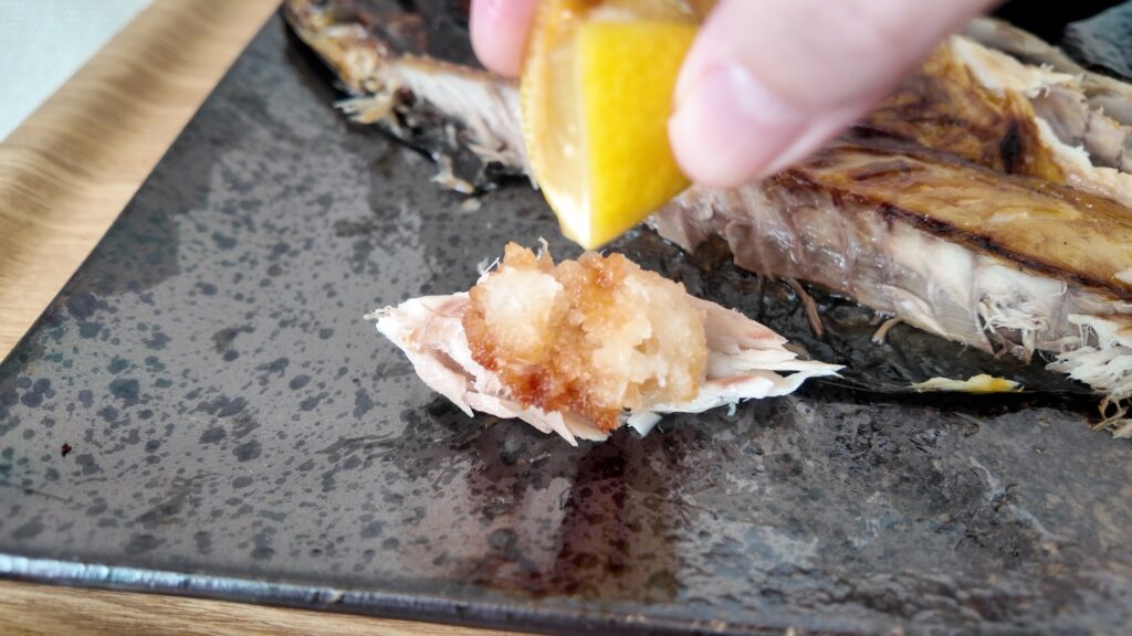 後半には大根おろしとお醤油、レモンを絞っていただいたりと様々な食べ方で美味しくいただきました。
