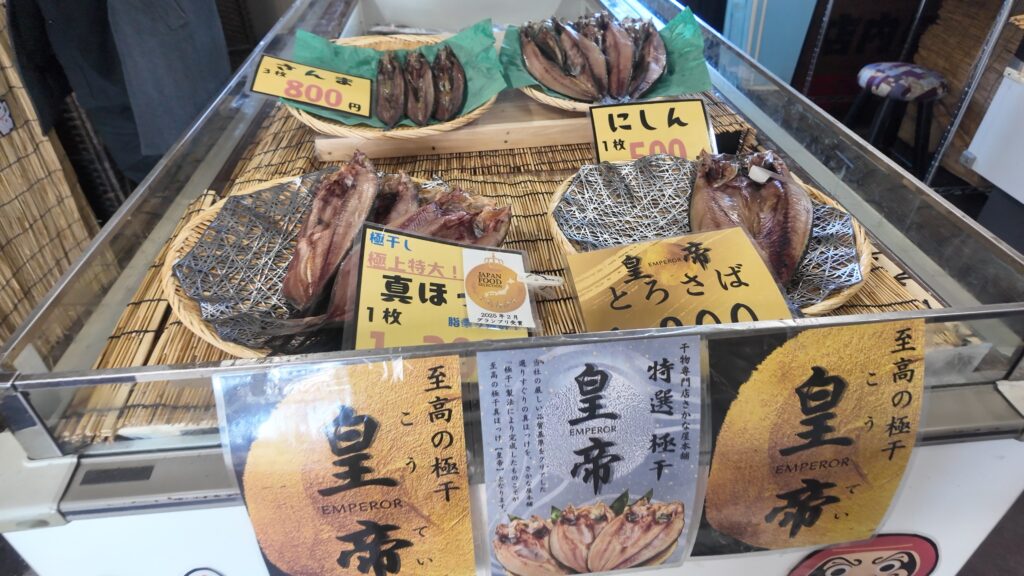 さかな屋本舗さんの厳しい基準をクリアし、製造工程やお塩などを変えて一手間加え製造し、旨みが増した干物が「皇帝」などだそうです。