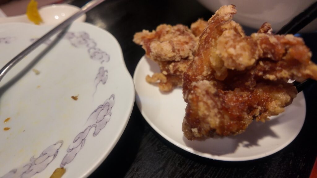 熱々で衣はパリッと中はジューシーで味がしっかり付いています。