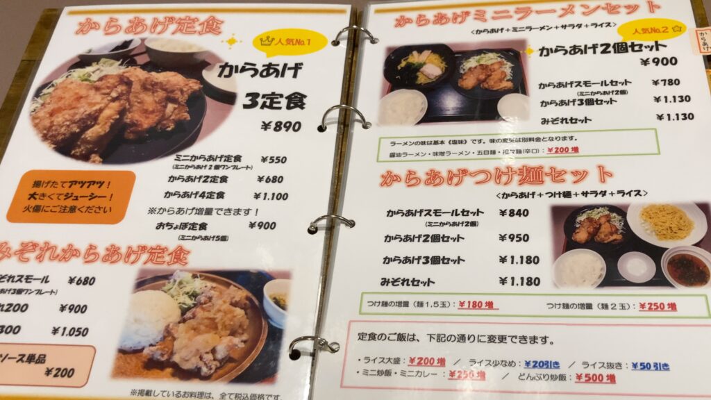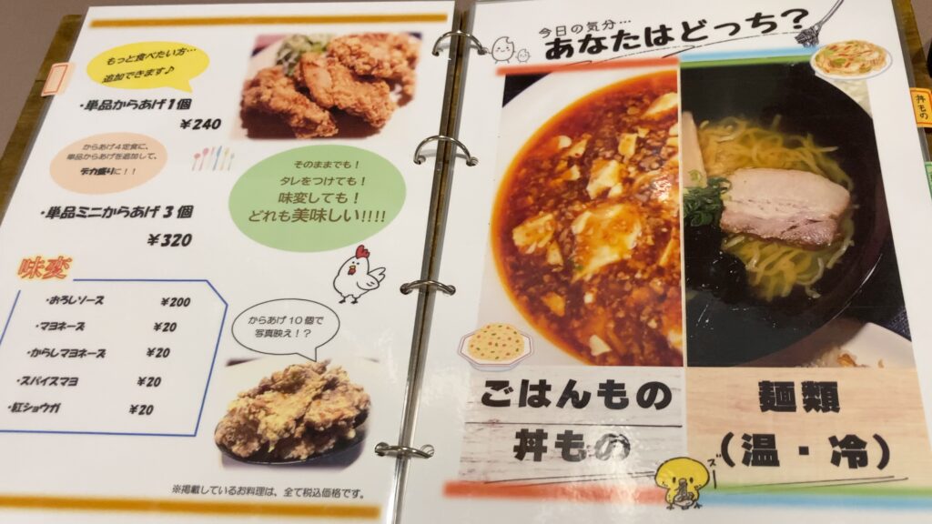 一番人気は「からあげ定食」、伺ったタイミングでは「からあげ」付きのセットや、単品+からあげなどを注文されている方が多く、からあげの人気っぷりを感じました。