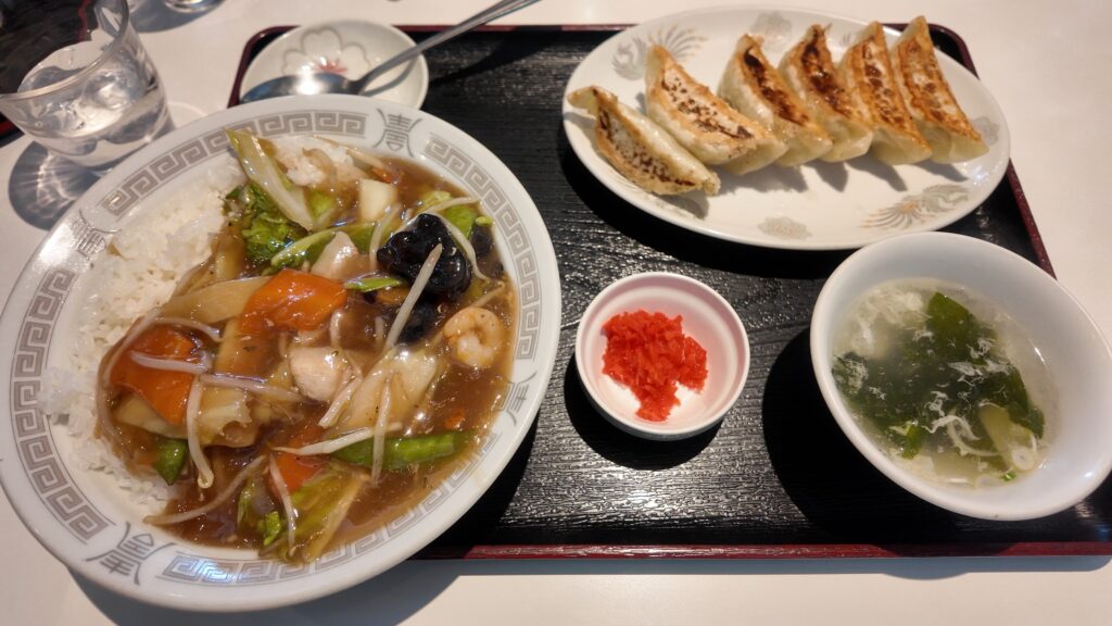 あんかけ焼きそばや広東麺のセットもあったので悩みましたが、餃子のお供にご飯を食べたかったので今日は中華丼にしました。