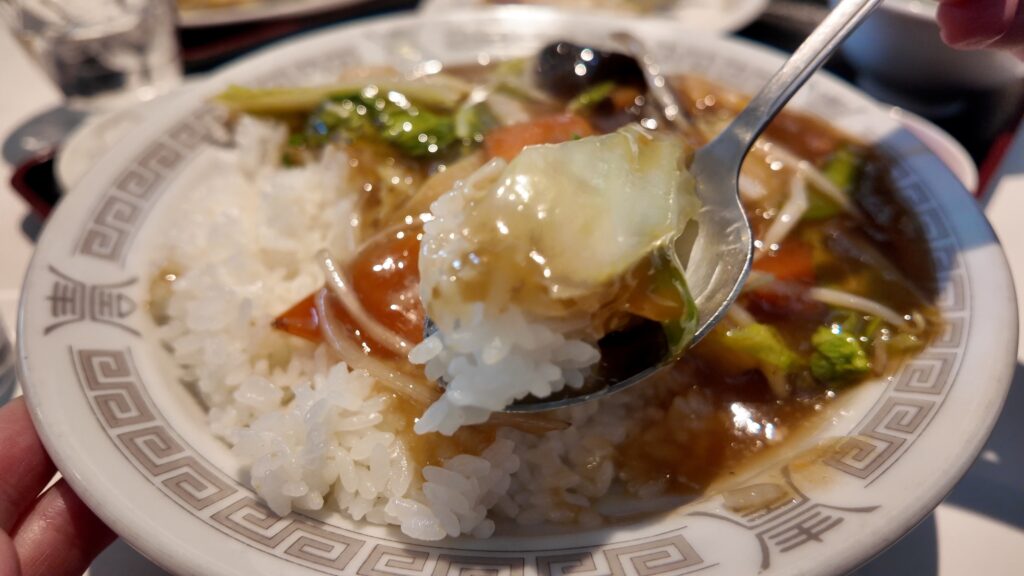 こちらの中華丼もご飯も餡もたっぷりでボリュームがありました。