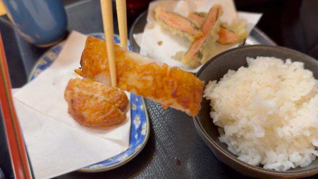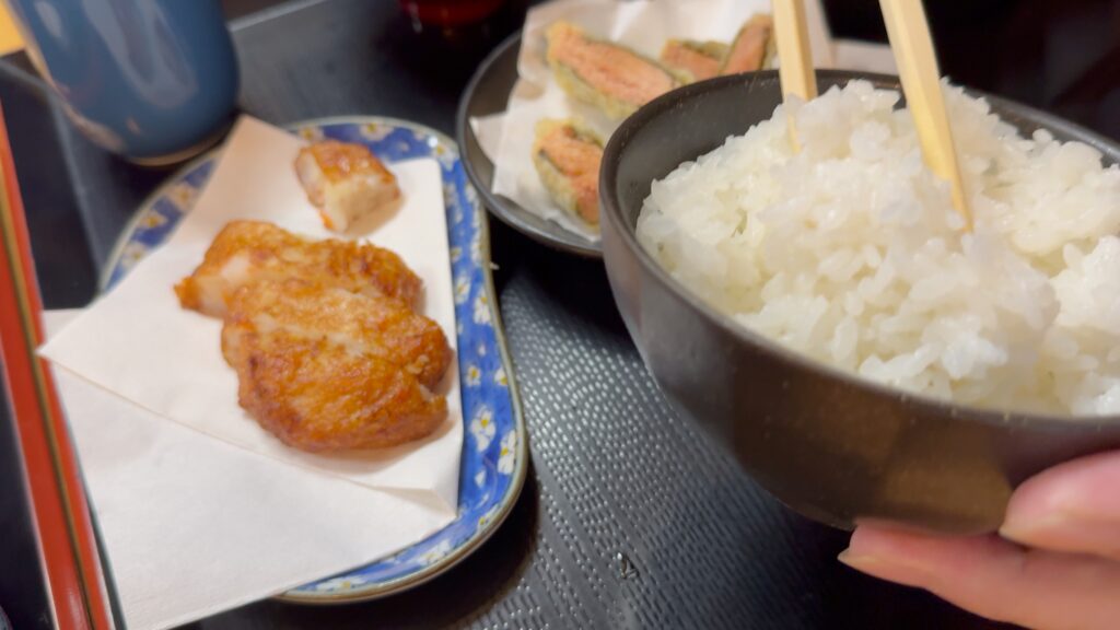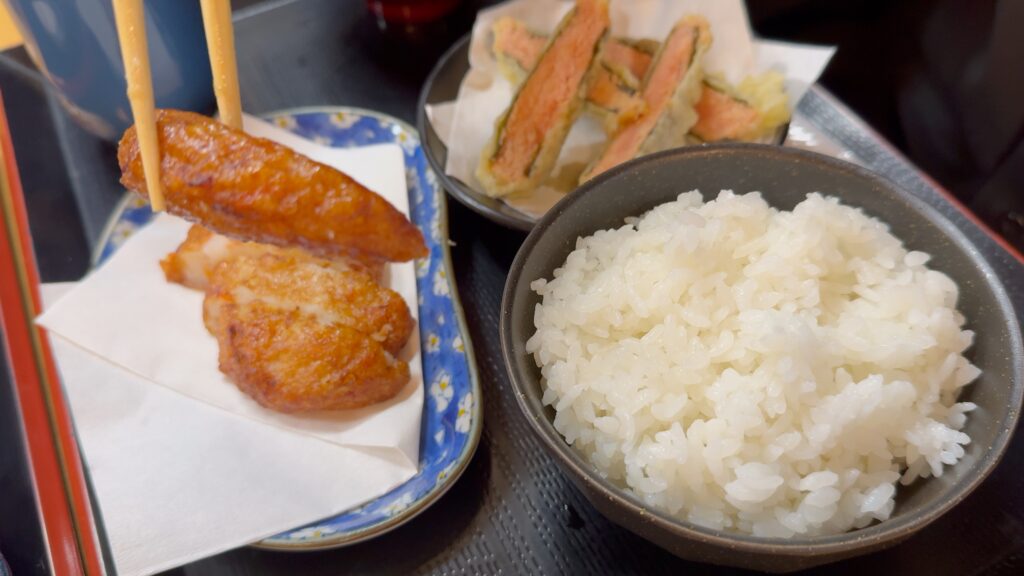 揚げたて熱々、弾力があり噛むほど口の中に旨みが広がります。
