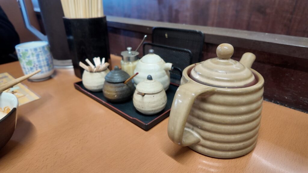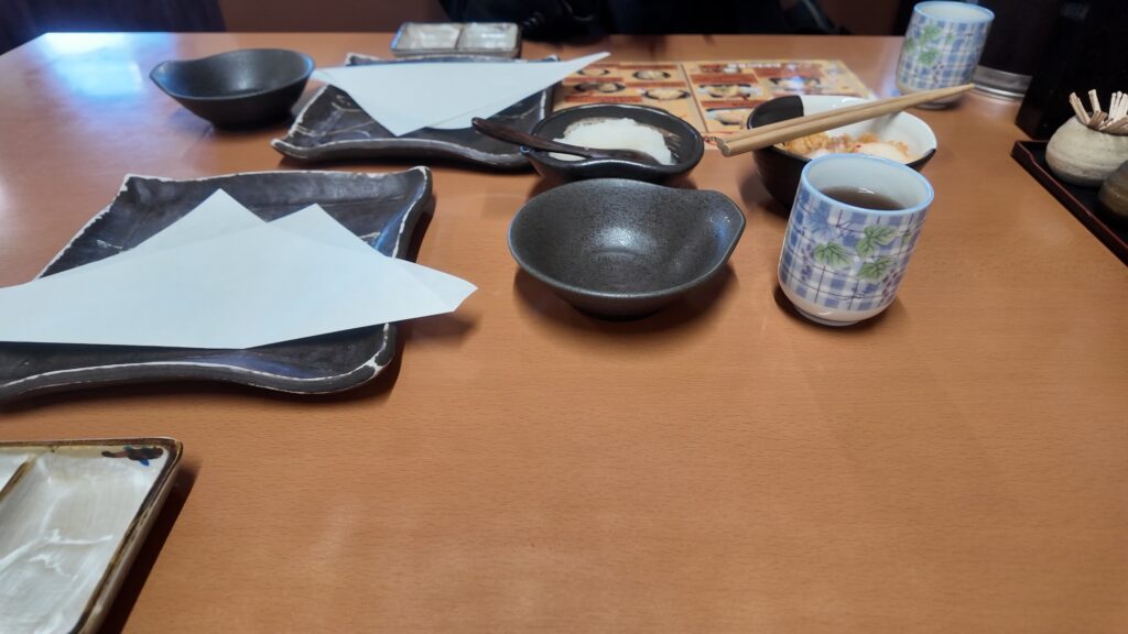 卓上にはお塩、生姜、唐辛子、お醤油が用意されていました。
