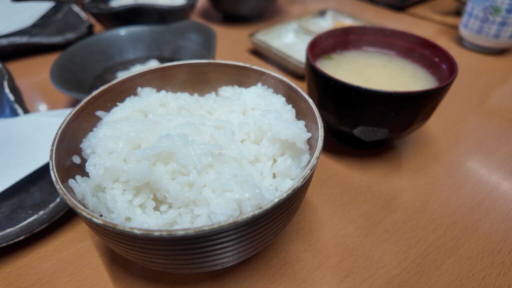 温かいお茶でほっこりしているとご飯とお味噌汁が配膳されました。