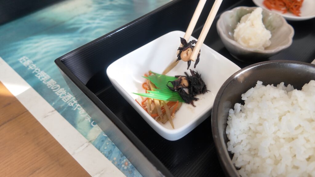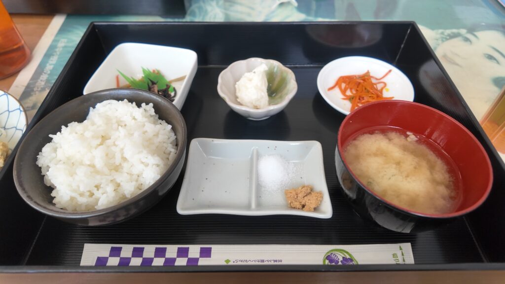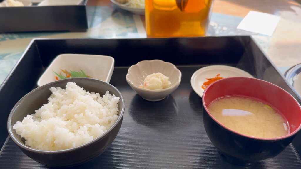 今回普通盛りでお願いしましたが、ご飯は大盛り無料でお味噌汁もおかわり無料とのこと。