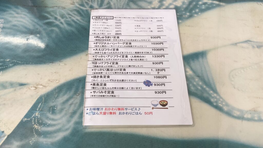 入荷時のみのでっかいアジフライ定食や数量限定の牛カツダブル定食も気になりますね。