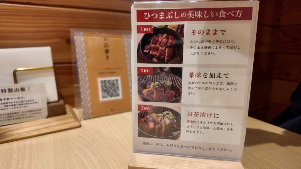 ひつまぶしの美味しい食べ方を予習、英語バージョンもありました。