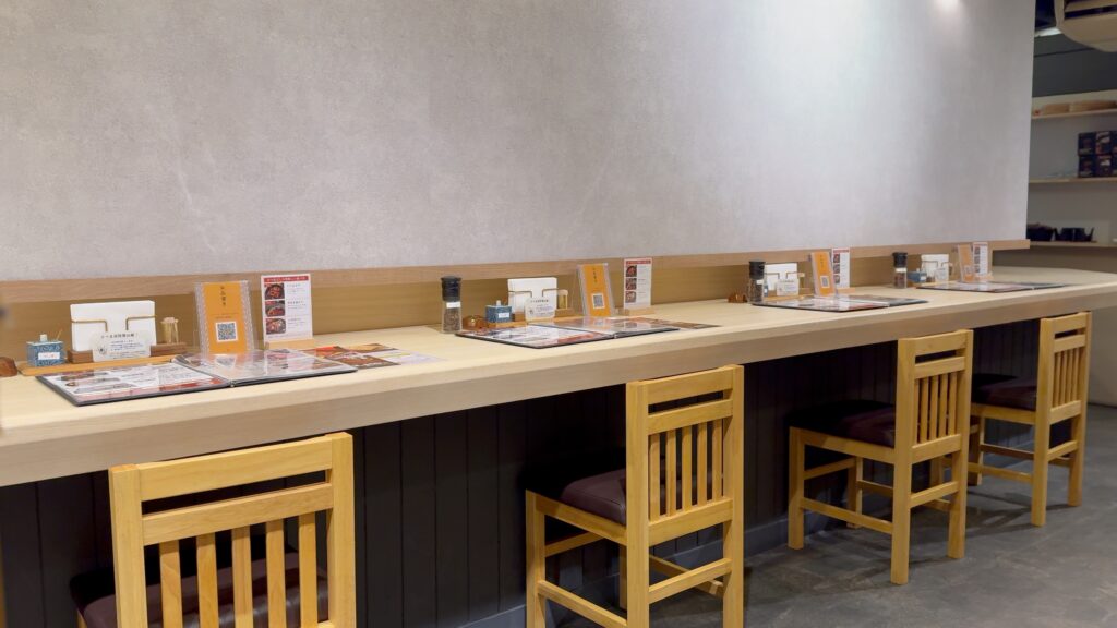 広々としていて綺麗な店内、テーブル席に着席しメニューを開きます。