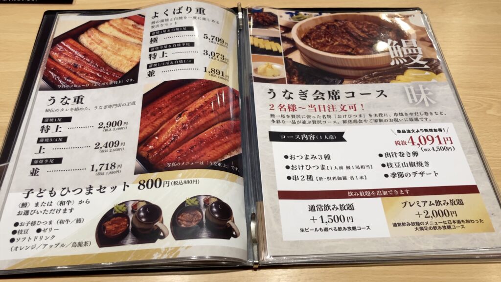 うなぎ専門店ですが値段が全体的にリーズナブルですね。