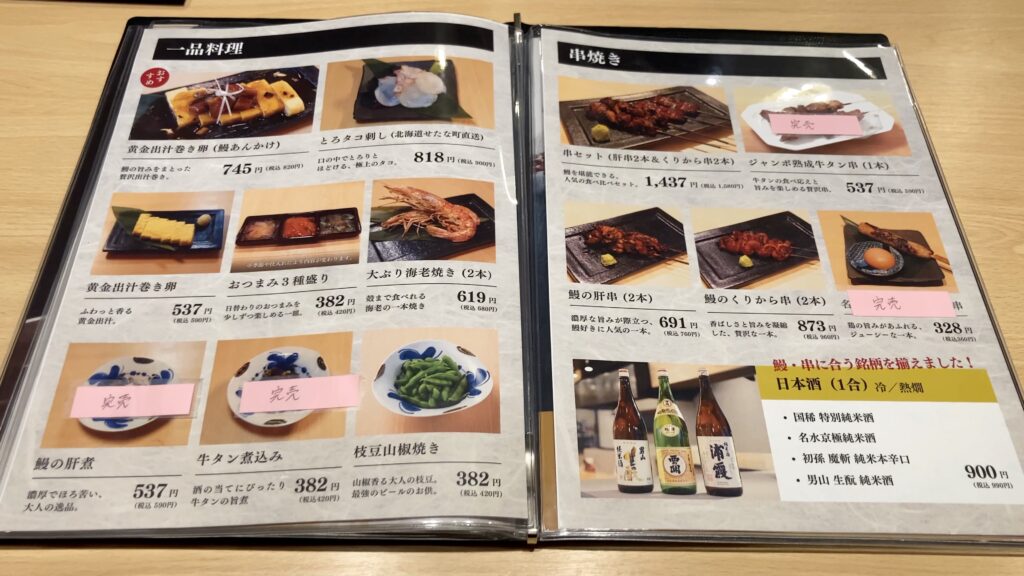 その他にうな重や会席コース、一品料理に串焼きなどもあります。